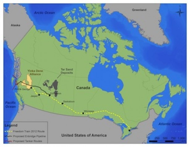The route of the Freedom Train from Alberta to Enbridge Inc.'s annual meeting in Toronto.
