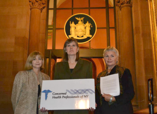 Dr. Sheila Bushkin, Sandra Steingraber, and Dr. Larysa Dyrska, all of Concerned Health Professionals of NY.