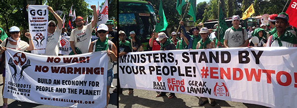 In 1999, anti-globalization protests rocked the World Trade Organization (WTO) negotiations in Seattle and gave birth to a new era of the global justice movement. At every turn the WTO has faced major protest from outside the negotiations and dissent from inside, from Seattle to Doha to Cancun to Hong Kong and now this week in Bali, Indonesia. As the 9th ministerial meeting of the WTO opens in Bali today, December 3, the feeling in the streets of Bali this week is one of urgency, powerful resistance, and increasing unity across social movements, sectors and borders.
