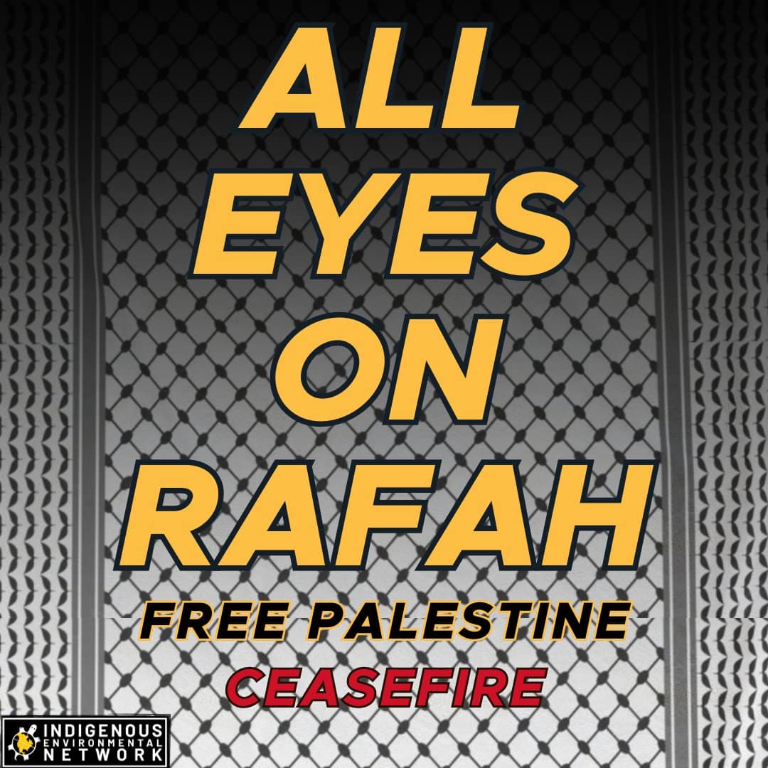 “Indigenous Environmental Network stands in solidarity with our immigrant, Black, Brown and Palestinian relatives. We recognize that our struggles against colonialism and imperialism parallels each other’s. The US government cannot continue to fund genocide,” Charlo stated.
