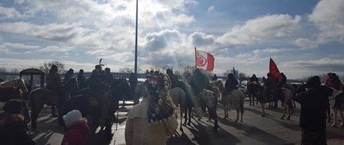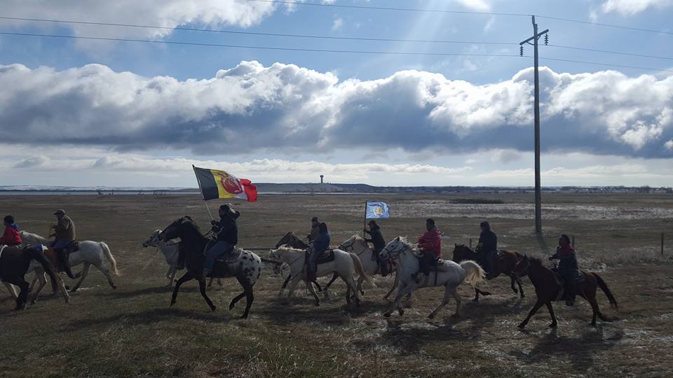 Riders on horseback set out from the tribal administration building traveling dozens of miles to the mouth of the Cannonball River where the projected pipeline will go through.