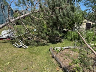 What’s been hardest to see is the damage to our Teaching Garden, a living, breathing space rooted in Indigenous food sovereignty and community learning. Several raised beds were destroyed, structures were knocked down, and heartbreakingly, we lost several of our trees. Trees that had stood with us through seasons of planting, ceremony, and teaching. These weren’t just trees; they were relatives. Their loss is deeply felt.